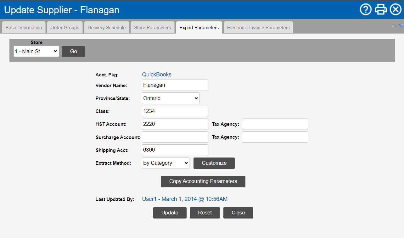 The Export Parameters tab will show only if the accounting package selected is compatible with CLEARVIEW.